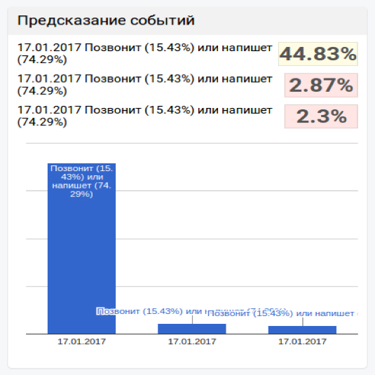 - предсказания звонков и писем от клиента прямо в карточке контакта и заказа;