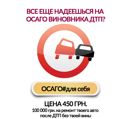 Не каждый готов приобретать договор КАСКО. Кто-то полностью уверен в своих водительских навыках, кому-то слишком дорого иметь такую широкую страховую защиту. Убытки в размере до 100 000 грн после ДТП без вины клиента покроет за 450 грн новая программа страхования ОСАГО #длясебя. В большинстве случаев этого будет достаточно для восстановления автомобиля.