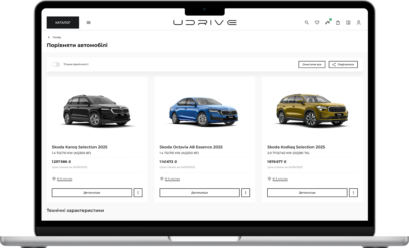 UDRIVE працює лише з офіційними представниками брендів, тому користувач отримує гарантію легальності та якості. Інформація про моделі від різних автодилерів структурована в єдиному форматі, що дозволяє швидко порівняти кілька варіантів і побачити різницю у характеристиках та ціні.