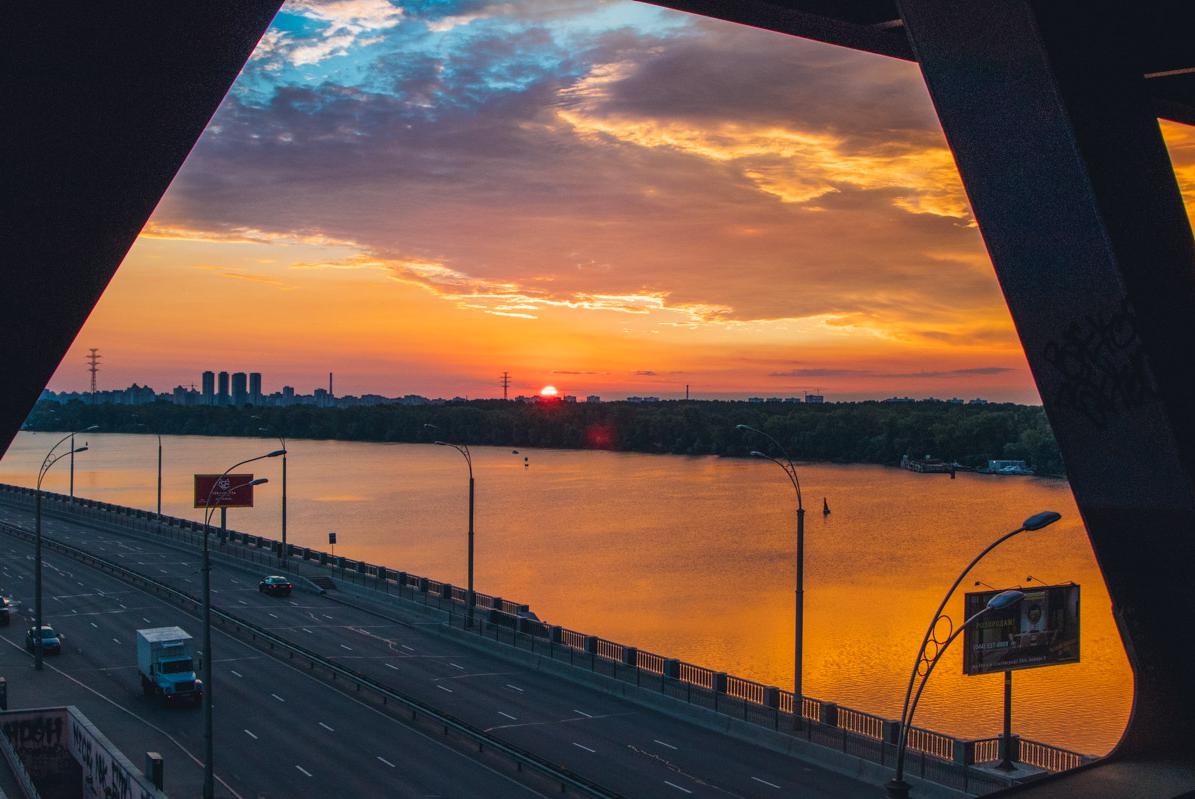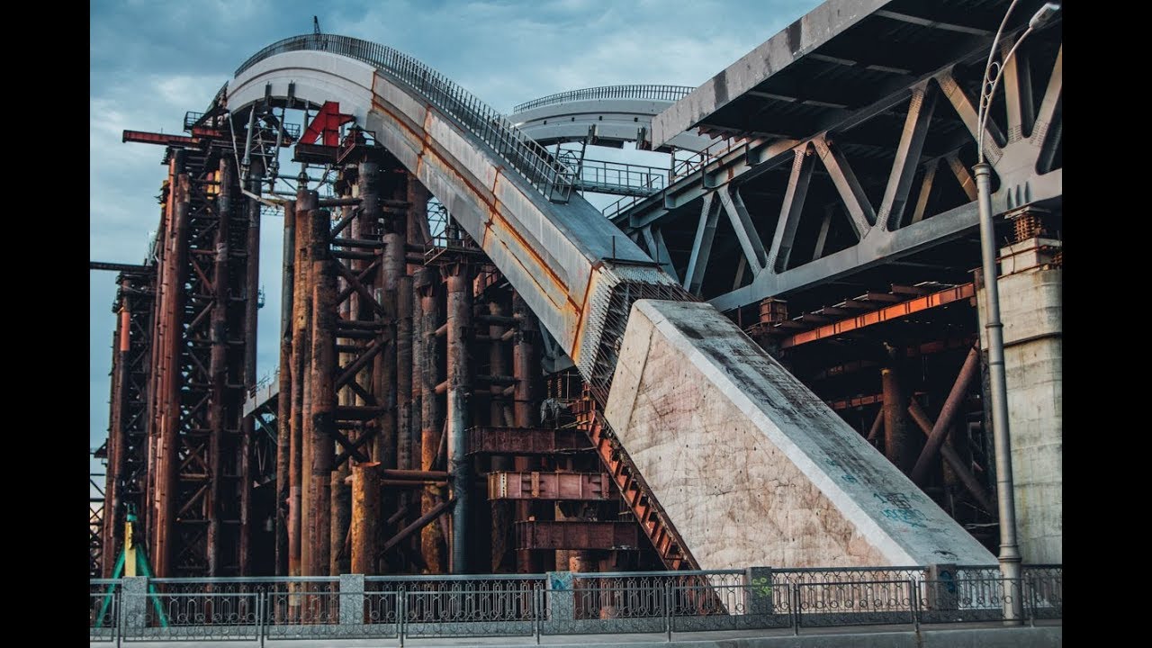 Про Подольский мост давно говорят и пишут, на нем снимают рекламу и разные телешоу, он известен всем жителям Киева. Но не многим удавалось видеть железного «динозавра» на рассвете. Недостроенная конструкция выглядит немного иначе в лучах утреннего солнца.