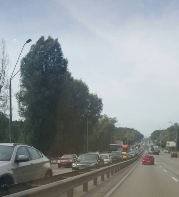 Через перекриття частини проспекту Перемоги у зв'язку із веломарафоном від спорткомплексу "Чайка" до метро "Житомирська" утворилася 5-ти кілометрова пробка при заїзді до Києва.