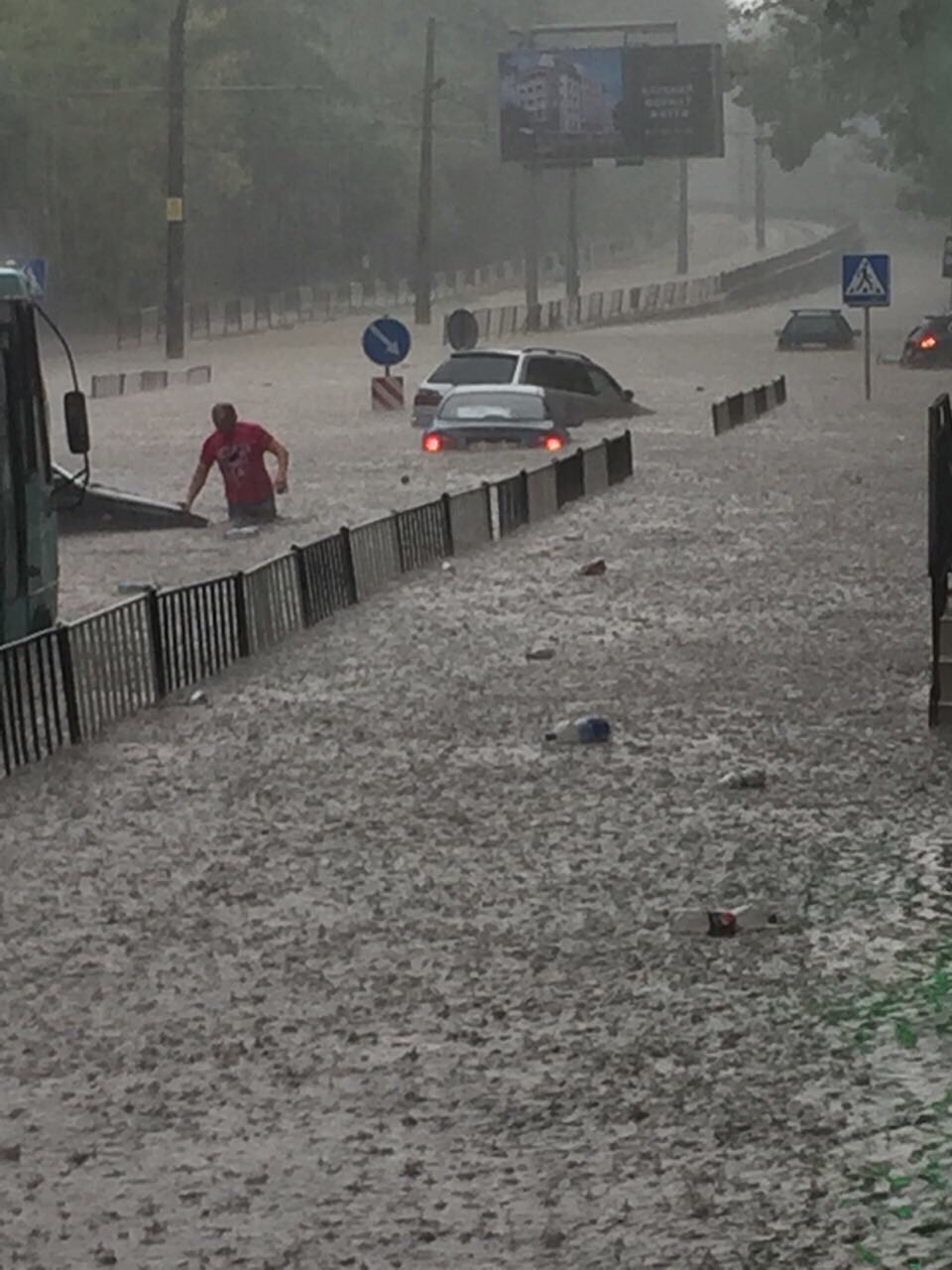 Очевидці діляться у соцмережах неймовірними кадрами, на що стихія перетворила місто за лічені хвилини. Через сильну негоду у місті тимчасово призупинили рух міських трамваїв та тролейбусів.